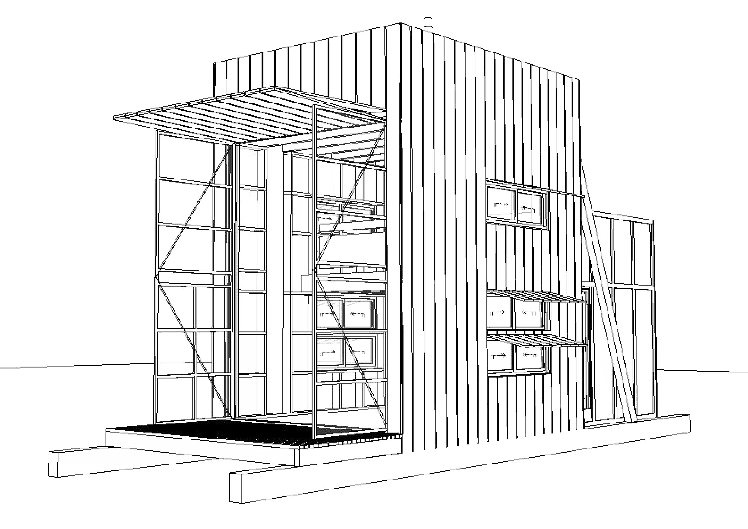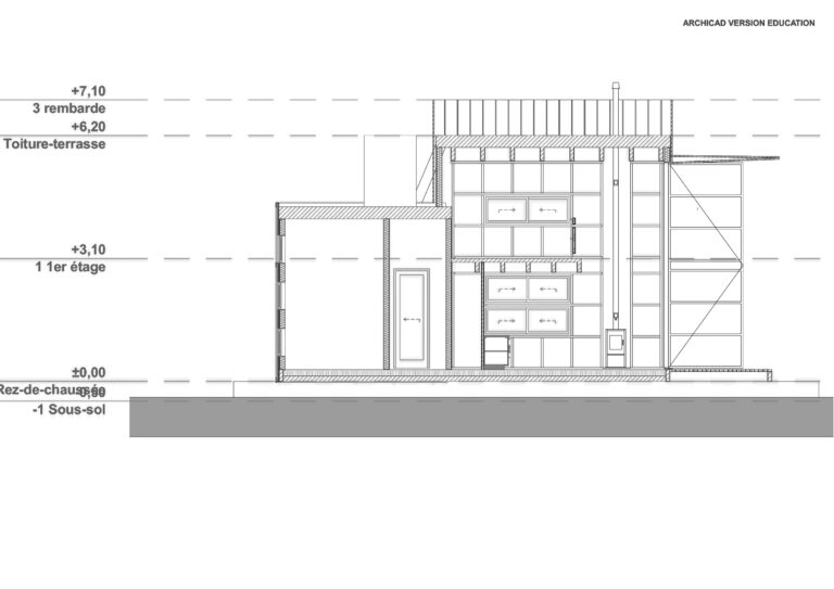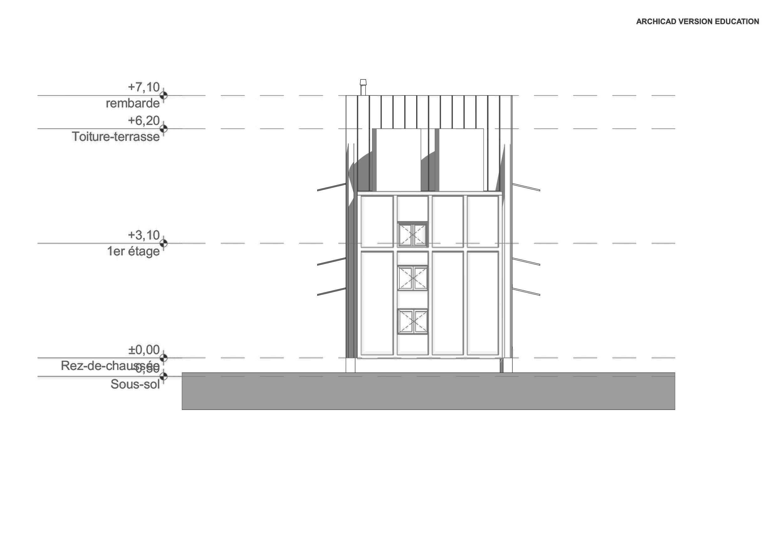 From photos and schematic plans, we aimed to reproduce the hut on sleds by Crosson Clarke Carnachan Architects in 3D model using Archicad software. The purpose of this exercise was to train us in the use of the software, but also in order to be able to initiate us to the practice of BIM by ultimately producing a BIMx file containing the plans and sections as well as a view 3D of the whole project.